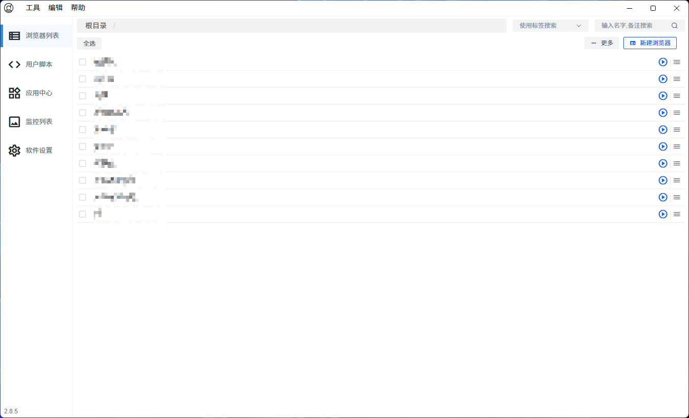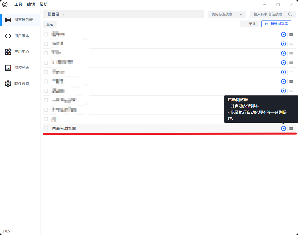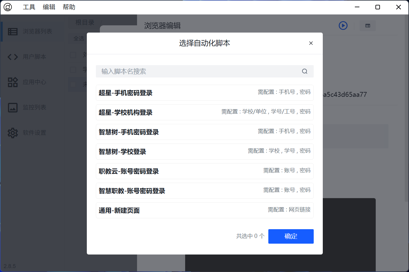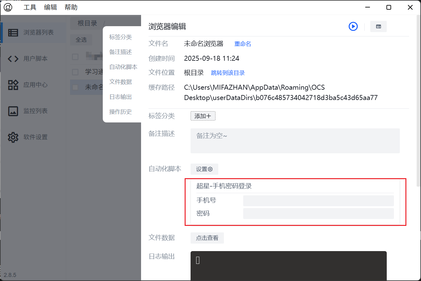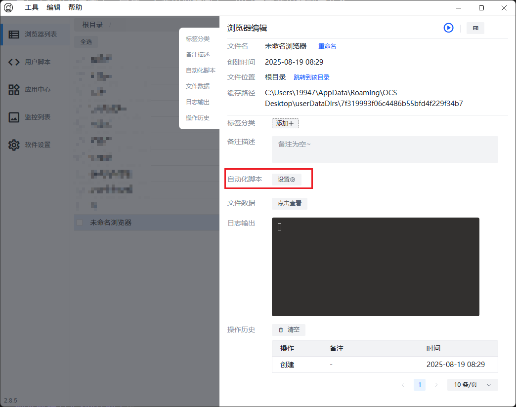 全部整备完毕这个应用要怎么运行呢?回到浏览器列表,新建浏览器-编辑-自动化脚本设置