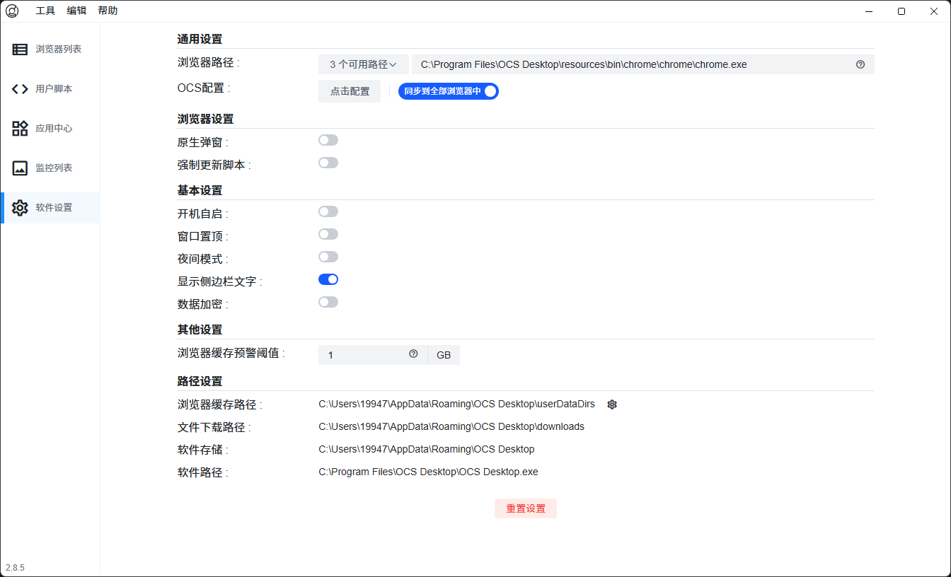 首先打开软件设置,配置好浏览器路径(一般会自动检索)
