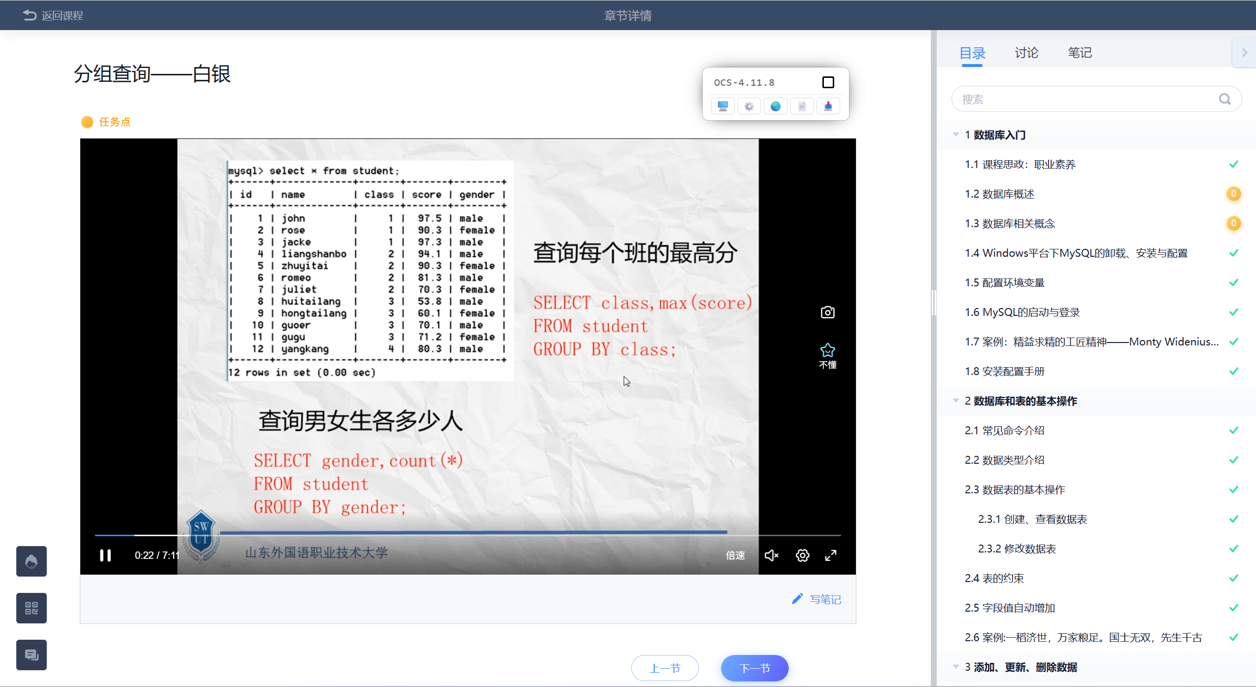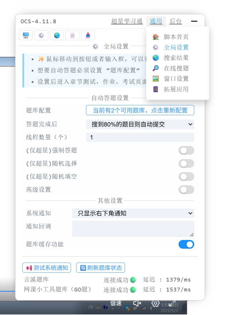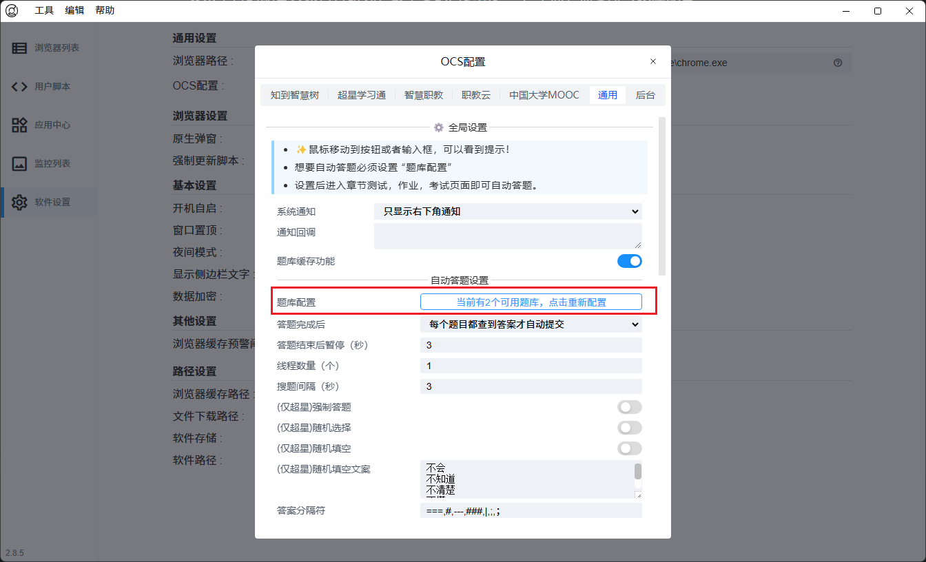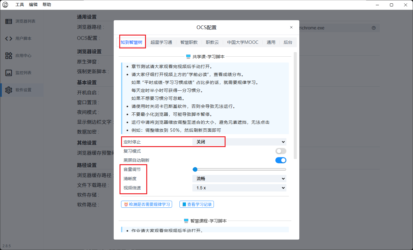 然后点击 OCS 配置,可以一些重要配置如调节智慧树的定时停止