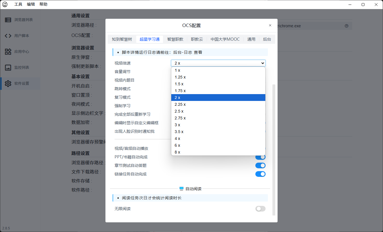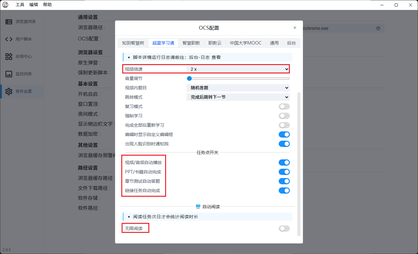 学习通的视频倍速,自动完成哪些任务点,自动阅读等