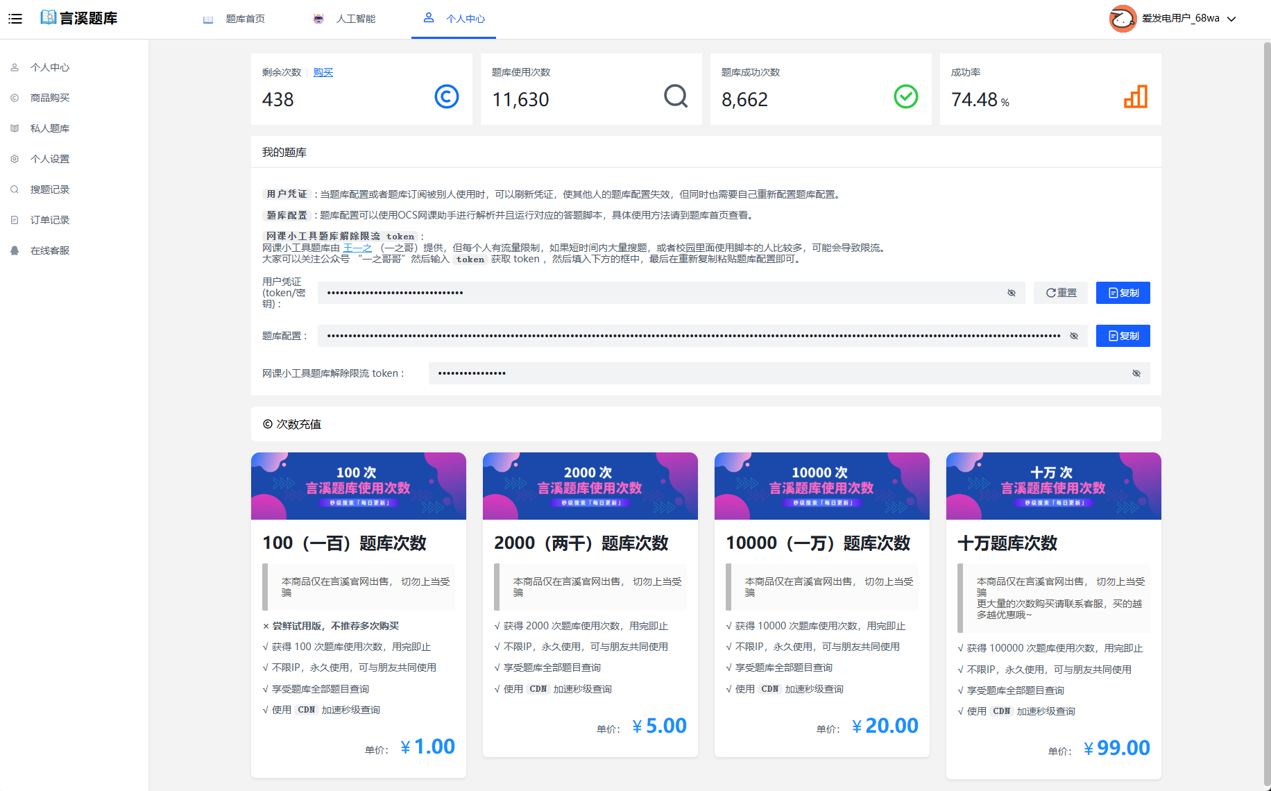 脚本是免费的,题库是收费的,5 块钱买两千次大概够用一年的了