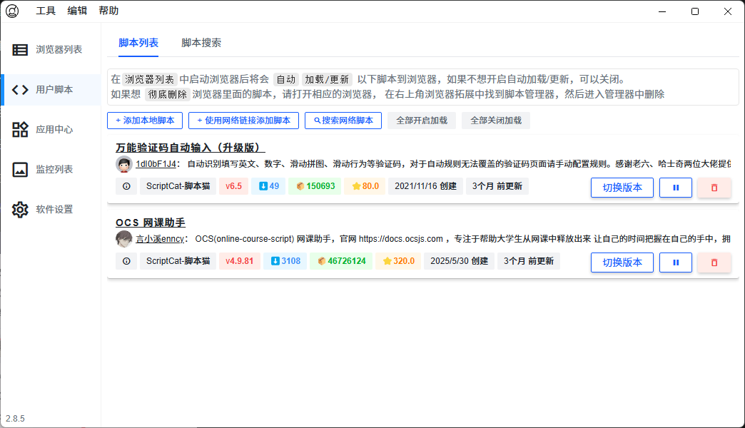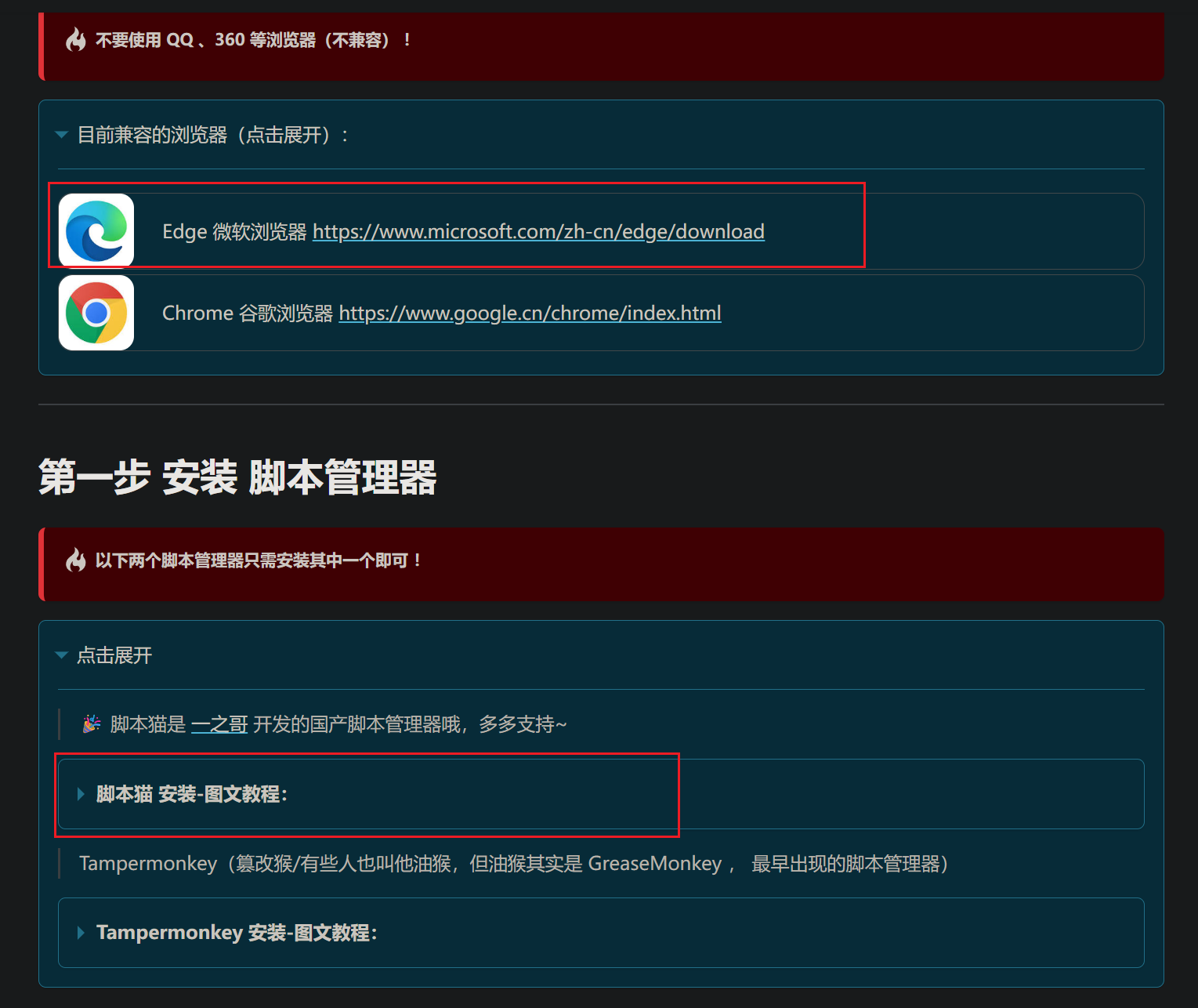 浏览器和扩展都搞定之后,再安装脚本,推荐使用脚本猫脚本站的链接