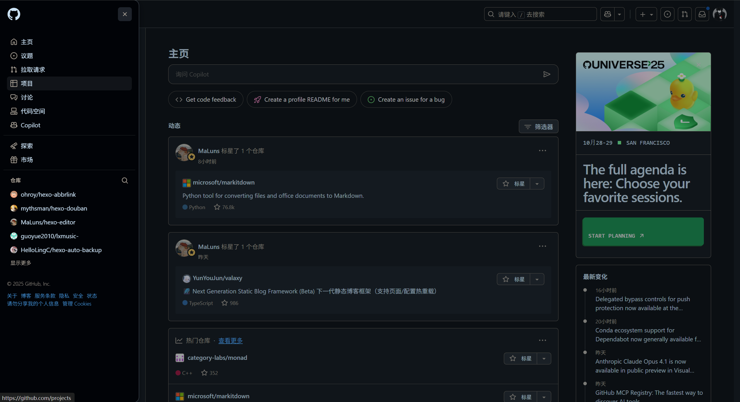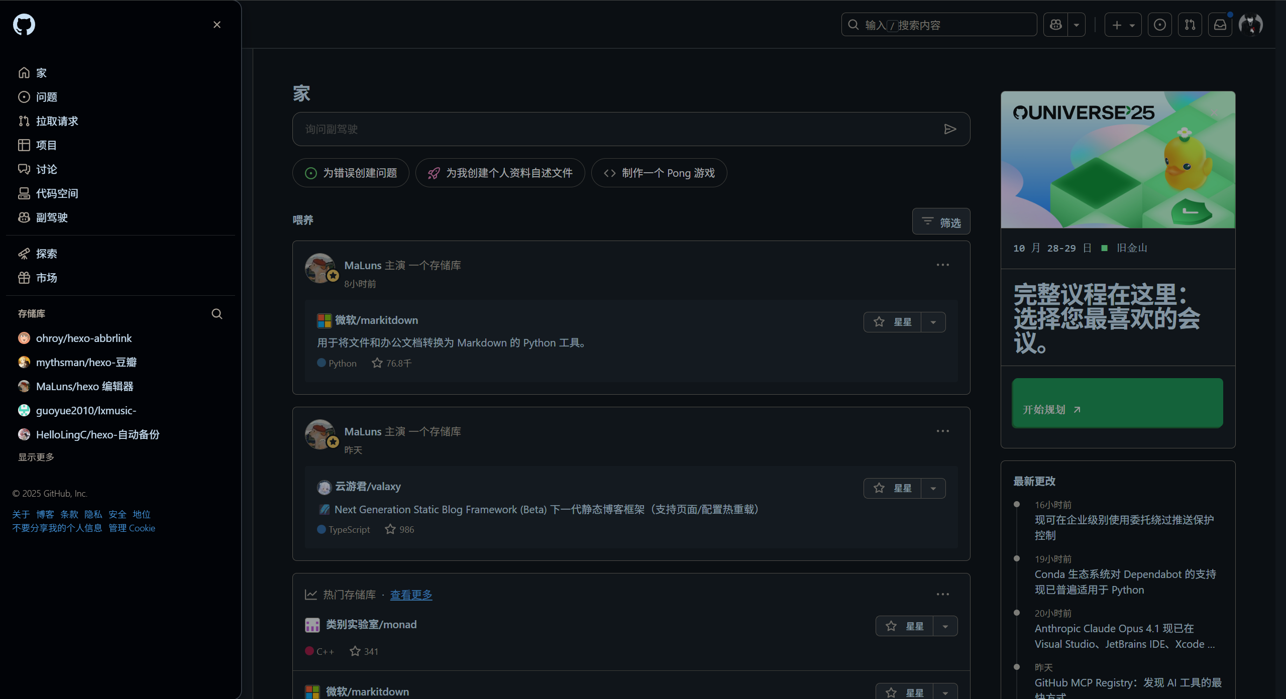 这也是 GitHub 页面,所有页面选项正确翻译,同时仓库名称保留英文